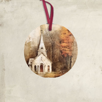 Porcelain Ornament 3" ornament. with velvet ribbon hanger. The ornament is flat 1/8" thick. and printed on both sides. The finish is gloss