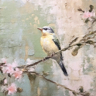 This stunning picture captures the beauty of nature with a colorful bird perched on a delicate cherry blossom branch. Bring a touch of serenity and art to any room with this captivating picture.
