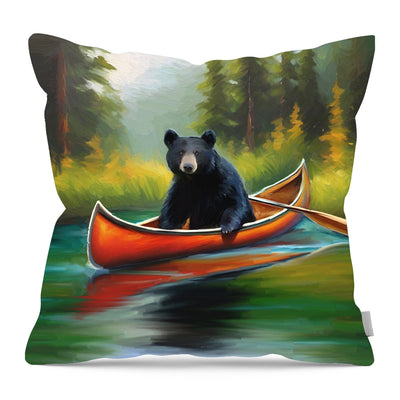 Black bear in Canoe - Pillow