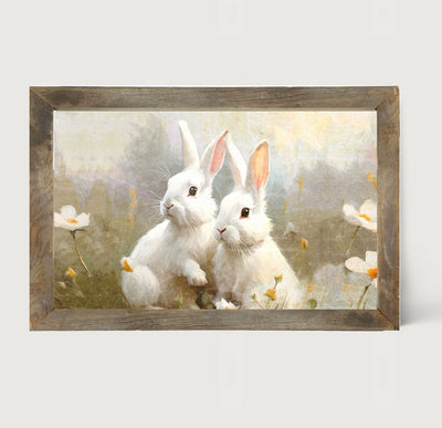 Bunnies in a meadow - Framed art