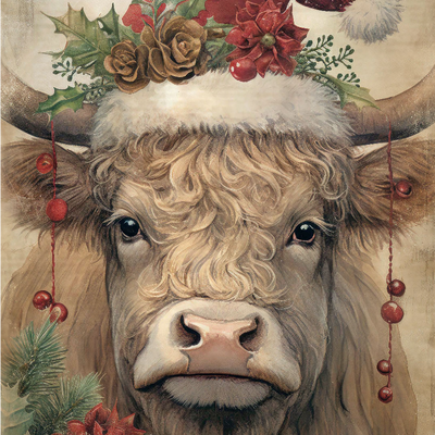 This festive Christmas Cow print is perfect for holiday decorations. Featuring a cow wearing a Santa hat, this picture brings a touch of Christmas cheer, it's sure to be a hit in any home.