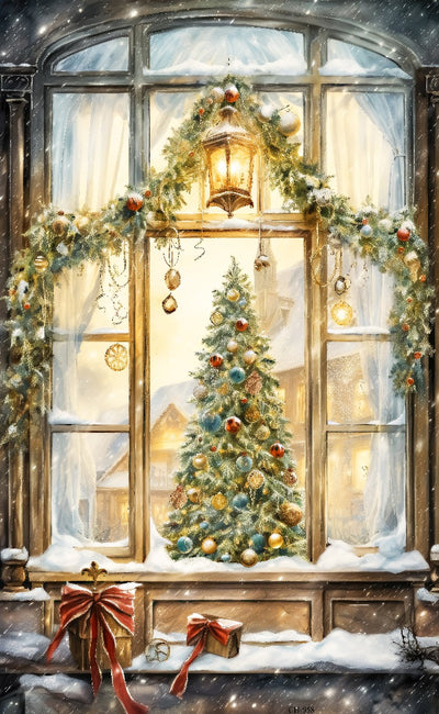 This beautiful Christmas tree painting in a window is the perfect way to add a festive touch to your home. Featuring a classic holiday scene, this picture is sure to bring a smile to your face throughout the festive season.