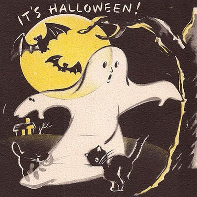 Get spooked by this eerie, vintage Halloween painting! Add a touch of the supernatural to your home with this one-of-a-kind ghostly picture. (Boo!)
