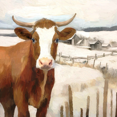 This stunning print captures the peaceful serenity of a cow resting near a wooden fence. This picture evokes a sense of tranquility and rural charm. Hang this artwork in your home or office to add a touch of nature and beauty to any space.