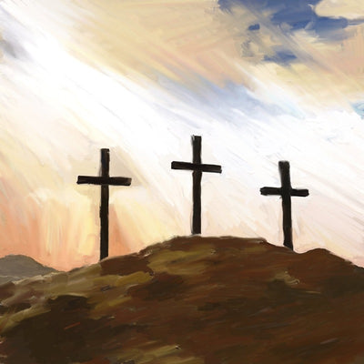 Crosses on a Hill share the narration of Jesus in brilliant colors and deep emotions. This print would be a great addition to your wall decor or alter at home.