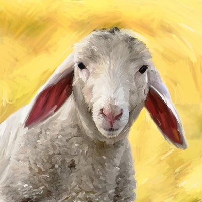 This Floppy Ear Lamb is very welcoming and inviting with the soft brush strokes and bright color tones. This pleasing animal favorite is a perfect gift for any interior space or nursery!