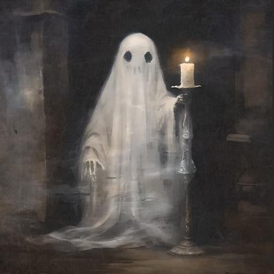 Ghost Holding a Candle is a captivating print of a ghostly figure at night. With its hauntingly beautiful depiction, it will add a touch of mystery and intrigue to any room or office.