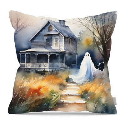 This Ghost in front of grey house pillow is printed on a 16" square pillow. This is the same image available framed. It is polyester linen style material. There is a hidden zipper for ease of washing. Our pillows come stuffed and ready to use if you add a pillow insert