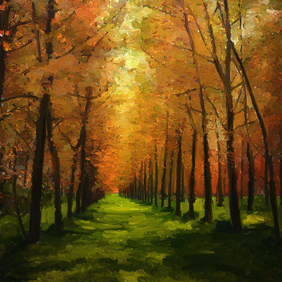 The Green Path painting depicts a tranquil autumn scene, with our signature trees along the path. Capture the beauty of autumn with this stunning painting, perfect for any home or office.