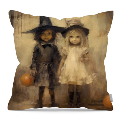 This Halloween Children pillow is printed on a 16" square pillow. This is the same image available framed. It is polyester linen style material. There is a hidden zipper for ease of washing. Our pillows come stuffed and ready to use if you add a pillow insert