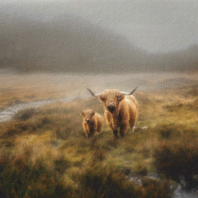 This beautiful Highland cows in field print captures the peaceful and pastoral beauty of the countryside. It will bring a rustic charm to any room.