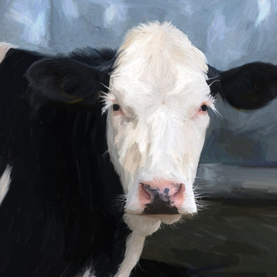 This ominous cow is a farm animal favorite. A Ginger Blue Decor original print of a painting by Stephen Montes. This vintage print comes exclusively from our farm animal collection. This print would be a perfect gift for our cowboys and cowgirls, and would compliment any living area or office.