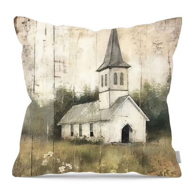 This Old Country Church 5 pillow is printed on a 16" square pillow. This is the same image available framed. It is polyester linen style material. There is a hidden zipper for ease of washing. Our pillows come stuffed and ready to use if you add a pillow insert