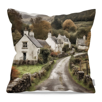 This Old Village Road pillow is printed on a 16" square pillow. This is the same image available framed. It is polyester linen style material. There is a hidden zipper for ease of washing. Our pillows come stuffed and ready to use if you add a pillow insert