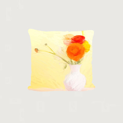 This Calf pillow is printed on a 16" square pillow. This is the same image available framed. It is polyester linen style material. There is a hidden zipper for ease of washing. Our pillows come stuffed and ready to use.