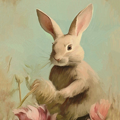 Capture the cuteness with our Pastel Bunny in field print. This playful painting brings a picture-perfect touch to any room.