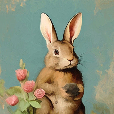 Capture the cuteness with our Pastel Bunny with roses print. This playful painting brings a picture-perfect touch to any room.