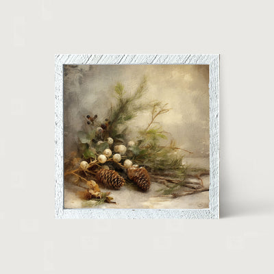 Pine and white berries - Framed art