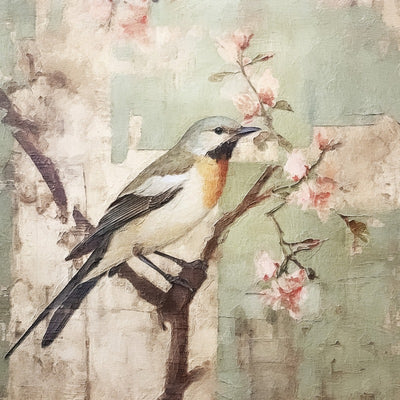 This picture features a red-breasted bird perched on a delicate branch, capturing the beauty of nature. This is sure to add a touch of elegance to any space. Bring the outdoors inside with this stunning piece.