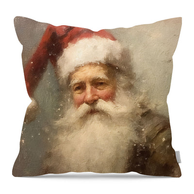 This Santa portrait 10 pillow is printed on a 16" square pillow. This is the same image available framed. It is polyester linen style material. There is a hidden zipper for ease of washing. Our pillows come stuffed and ready to use if you add a pillow insert