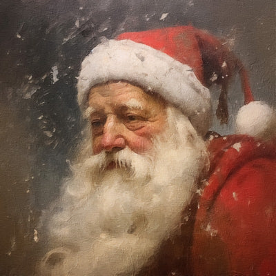 The Santa portrait 9 is a picture of Santa Claus, painted in a classic style with muted colors. It adds a tasteful, traditional holiday cheer to any room.
