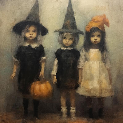 Get spooky with our Trick or Treating Children print! Perfect for adding a touch of whimsy to any room and casting a spell of delight on all who see it. Don't miss out on this spellbinding addition to your home.