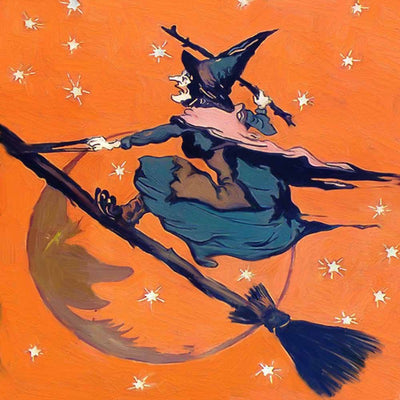 In "Vintage Witch on a Broom," a captivating artwork takes us back to a bygone era of Halloween enchantment. The composition unveils a charming scene featuring a witch gracefully riding her broomstick. With a vintage touch, this artwork evokes a sense of nostalgia and timeless fascination. The witch's flowing cloak and pointed hat, paired with her poised posture, create an aura of mystery and magic. This piece invites viewers to embrace the whimsy and allure of Halloween, transporting them to a world of spells and sorcery. Immerse yourself in the enchantment of the "Vintage Witch on a Broom" and let its vintage charm ignite your imagination, evoking the spirit of Halloween's allure and wonder.