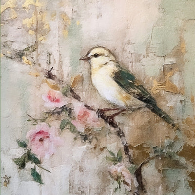This exquisite picture features a white-breasted bird perched gracefully on a delicate branch. Enjoy the calming presence of this charming bird in your home, adding a touch of elegance to any space.