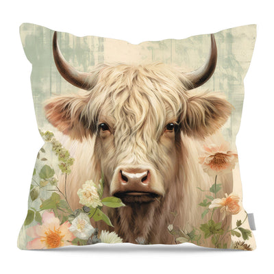 This White Highland cow with flowers pillow is printed on a 16" square pillow. This is the same image available framed. It is polyester linen style material. There is a hidden zipper for ease of washing. Our pillows come stuffed and ready to use if you add a pillow insert